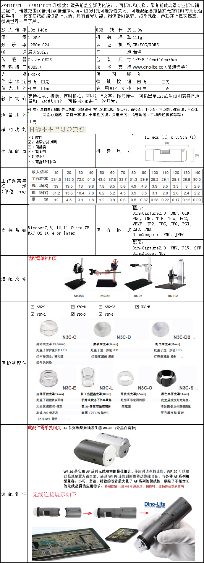 AF4115ZTL | 130萬 | 1280*1024 | 10X-140X | 8 | 有 | 有 | 有 | WF-20 | 無 | 無 |